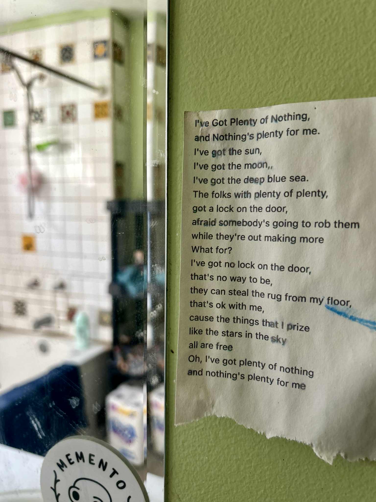 I’ve kept it up over the years, on and off, whenever we manage to have both ink and paper in the printer. Whenever I come across something that sounds good, and like something I would like my kids to see, I print it out right then and there and stick it to the wall.